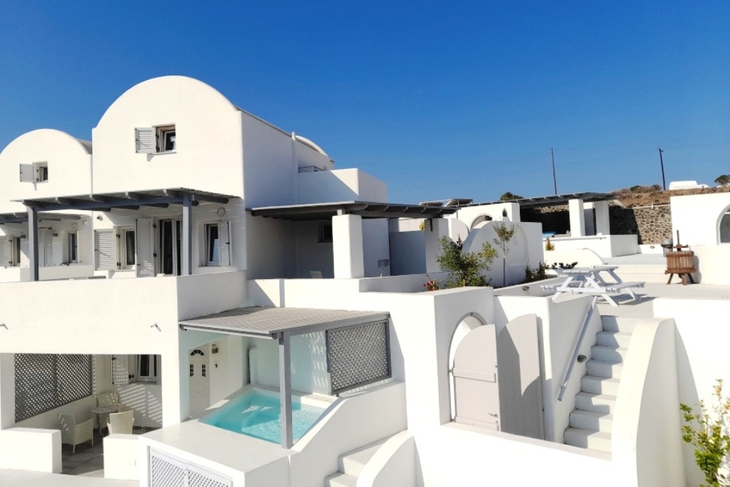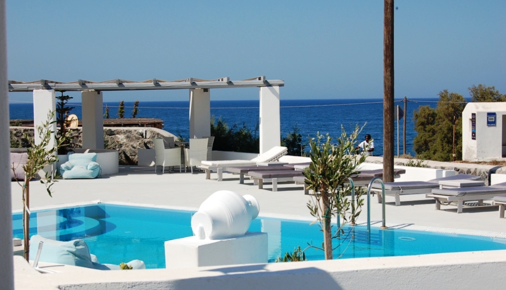 Sea paradise villas seaside, traditional houses hotel in Oia Santorini
